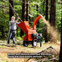 A large vertically oriented hopper, a precisely-angled heavy-duty chipping knife, and a powerful air channel work together to pull branches into the chipping hopper and blast wood chips out the discharge. Most materials will self-feed, so once you drop a branch in, you're free to get the next one. No force feeding required!