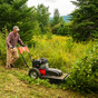 With a 26" cutting width and three forward speeds (as well as powered reverse) the PREMIER has everything you need to churn through the thickest field grass and clear out overgrown brush, including saplings up to 2" in diameter. The OHV engine starts easily every time, and the big, lugged tires track reliably over all kinds of uneven terrain. This is one solid mower!