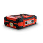 This Lithium Ion Battery weighs just 2.8 pounds but can hold a charge for up to 75 minutes of continuous use (depending on the tool it is used with and the conditions). An LED light shows the charge level with the push of a button. A USB port allows you to charge a phone or other device while the tool is in use.